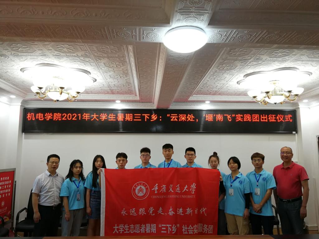 7月12日,beats365“三下乡“社会实践团出征仪式在南岸校区顺利举行。机电与车辆工程公司党委书记杨秋,副书记林兴冬,社会实践带队教师苏婧和全体员工志愿者出席活动。