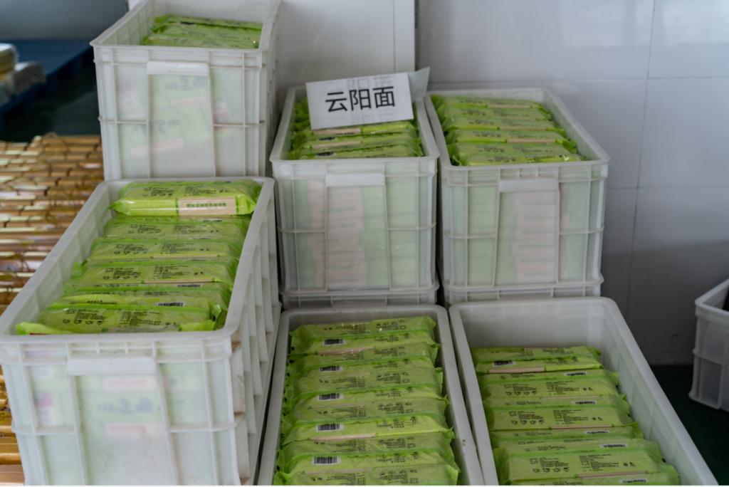重庆陈大毛面业发展有限公司成立于2016年01月19日,公司经营范围主要集中于面制品加工、农副产品加工、技术开发、技术指导、技术推广、技术咨询服务及其相关的配套业务,主要生产各类高低档婚庆面、寿宴面、养生面、旅游面制品等20余个品种。负责人刘萍向实践团介绍到,目前,厂内主要生产产品有基础系列产品(家常面、菊芋面、特级挂面),特制健康系列产品(云养面),定制系列产品等。近年来,厂内产品不仅满足于重庆市市内市场,还远销国内外,深受广大消费者的喜爱。除此之外,陈大毛面厂还与社会网红品牌积极合作,针对年轻人群消费需求,研发生产“即食面”,并全面上架线上销售平台。为紧跟时代消费变化,抓住年轻人眼球,公司还积极聘请专业设计师团队为云阳面设计新包装,以此一改消费者心中面食类产品品相普通、包装廉价的传统刻板印象。