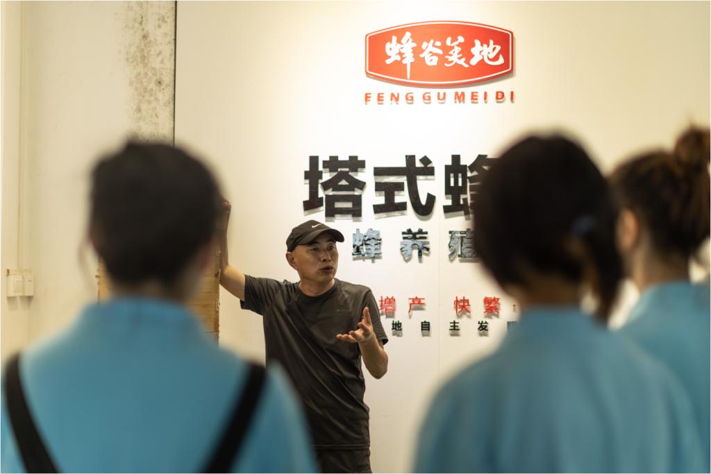 2008年6月成立的蜂谷美地,是国家科技部重点星火计划项目承担单位。专门从事山区生态养蜂、蜂产品科研、深加工、销售和农业观光旅游。重庆蜂谷美地生态养蜂有限公司是一家专业从事养蜂技术培训、标准化养蜂基地建设、蜂蜜产品深加工、蜂机具研发制造以及蜂产业科普旅游的市级重点农业产业化龙头企业。姚总向实践团介绍到,蜂谷美地在汲取传统蜂箱优势的基础上,避开了传统蜂箱的诸多弊端,依据蜜蜂生物学原理,并结合多年蜜蜂饲养管理经验研发了一套具有自主知识产权的中蜂饲养管理专用工具,极大地促进了中蜂产业的发展。