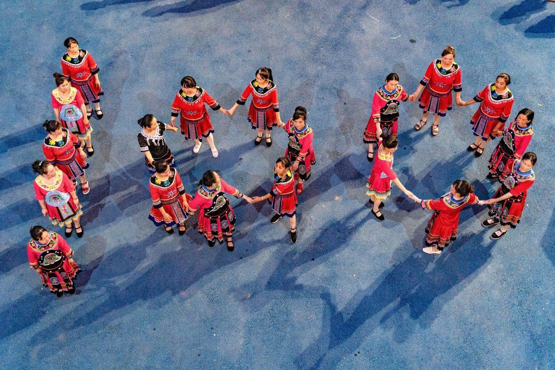 实践团师生与大堰村村委进行座谈后,针对大堰村农旅发展、土家族民族特色、乡村特色产业等方面对大堰村进行实地走访调查,实践团一行人重点考察了大堰村土家族民族特色文化——摆手舞。摆手舞活动现场,大堰村村民邀请实践团成员齐跳摆手舞,加入这场凝聚了土家族浓郁风情的盛宴。实践团希望后期通过各种新型媒体的宣传,让更多人了解到多彩的土家民族文化。盛宴过后实践团还为她们进行了党史教育的宣传,村民在学习党史后深刻了解到幸福生活的来之不易,村民们自发围绕“100”的字样,热烈庆祝中国共产党建党100周年。