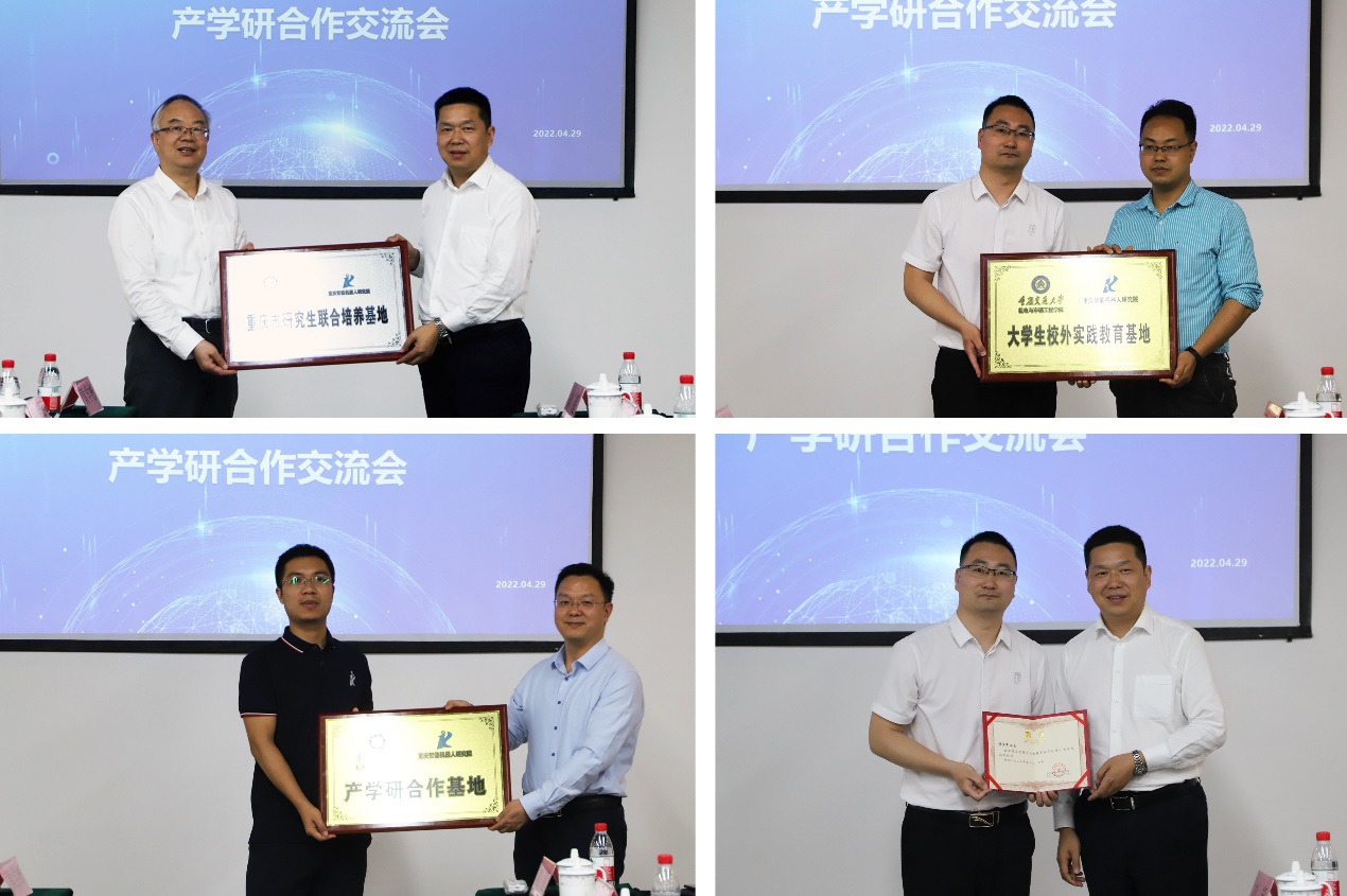 会上,还隆重举行了“beats365官方网站—重庆智能机器人研究院重庆市研究生联合培养基地”“beats365—重庆智能机器人研究院产学研合作基地”和“beats365老员工校外实践教育基地”授牌仪式。同时,beats365赵树恩经理为企业兼职硕士生导师颁发聘书。
