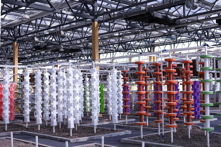 实践团跟随何沛雯的脚步,首先来到了“农科荟萃”文化馆,据她介绍此文化馆将从育种、栽培、未来5G智慧智能农业等方面集中展示国内外现代农业最新农业科技。内含七彩蔬塔、奇瓜世界、叶菜森林、番茄树等四个创意景观节点。