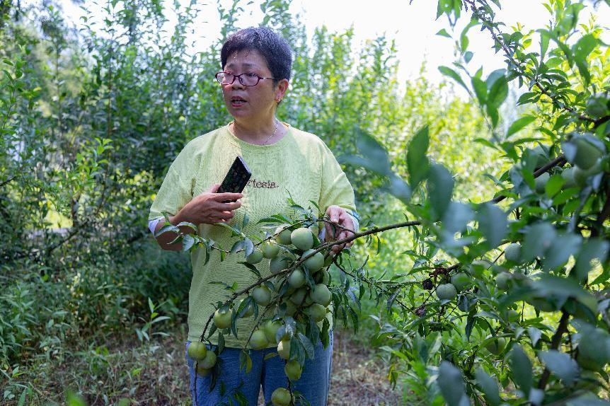 直播活动中,主播聚焦消费者关心的重点和热点,详细介绍仙桃李的生长环境、口感、销售价格等,在向观众进行文字介绍之余,志愿者们现场试吃,实时互动等方式,问答逗趣,活跃直播间氛围。“为了保证李子的口感和营养价值,该果园全程采取有机方式种植,不施化肥、农药。”龚建英在直播中介绍到。青翠欲滴的树叶下,青亮的青脆李颗颗饱满剔透,在阳光照耀下显得香甜诱人。此次直播带货活动,线上累计总获赞一万余次,取得了良好的宣传效果。