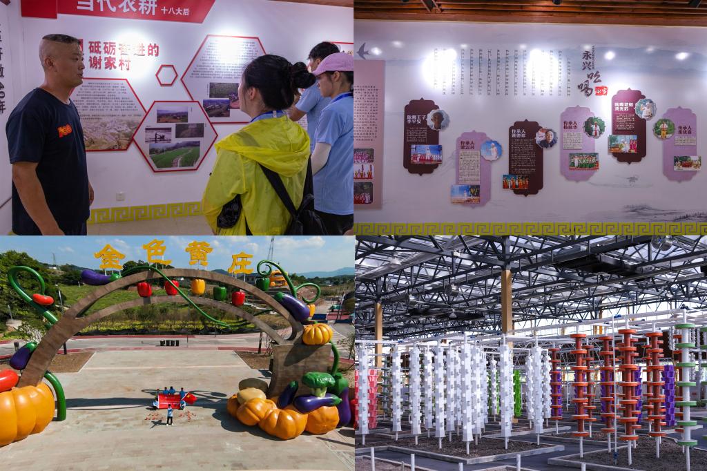 黄庄村依托“轮种模式”引进江记农业公司,大力发展“酒经济”。江小白高端高粱酒“三五挚友”的原料由黄庄村独家提供,每年还为江小白提供高粱酒原材料50万公斤,带动当地居民增收。实践团在永兴镇黄庄村本土人才何沛雯的带领下,走访当地“金色黄庄”农业嘉年华,实地考察农业和旅游业发展规模及现状。该农业嘉年华依托富硒高粱油菜产业的良好基础,打造成为集科技示范、数字智能、时尚文创、休闲体验、科普教育等多功能为一体的乡村旅游与文旅结合示范园,不仅带动当地旅游经济发展,还为村民提供工作岗位。