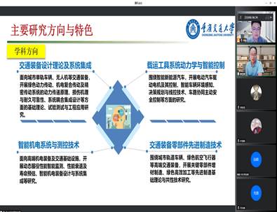 陈仁祥副经理主要介绍了公司发展历史、团队力量、科研成果、科研平台和硬件设备等内容,重点就“交通装备设计理论及系统集成”、“载运工具系统动力学与控制”、“交通装备智能测控与健康管理”和“交通装备先进制造技术”四个学科方向与特色做了翔实说明,鼓励同学们坚持初心、刻苦奋斗、不留遗憾,取得优异考研成绩。