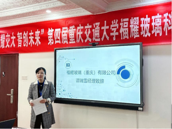谭瑞雪经理介绍了福耀集团的基本情况并详细介绍了福耀玻璃(重庆)有限公司发展战略、经营规划和取得的业绩。她表示,科技文化艺术节是公司校园文化的浓缩,是同学们创新精神和个性才艺特长的大展示,同时也是公司全面实施素质教育、培养员工科学意识,互相交流学习的平台,甚至是我国未来科技精英成长的摇篮。她寄语同学们精心准备,共同关注,人人参与,用前瞻的眼光、以满腔的热情积极主动地参与到科技文化艺术节的各项活动中来。行而不辍,未来可期,希望同学们注重品格,时刻准备,让青春在奋斗中绽放光芒。