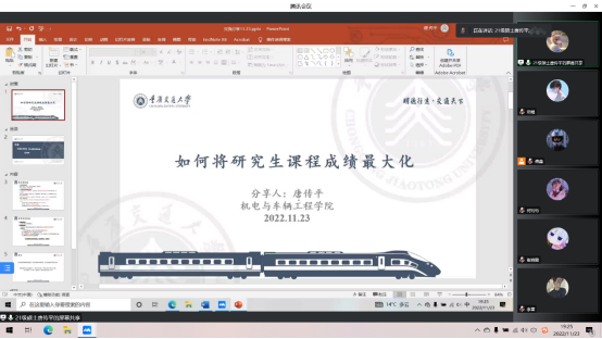 为了提高公司研究生的学术素养,增强研究生的专业理论水平,开拓研究生的学术视野,营造一个开放、创新、自由的学术研究氛围,发挥优秀员工榜样引领的模范作用。公司于11月23日下午举行了研究生学术沙龙系列活动拔尖人才培养经验分享交流会。本次会议邀请到了公司车辆工程系系主任、重庆市巴渝学者青年学者崔晓璐副教授以及2020级与2021级优秀员工代表:20级硕士研究生李童、21级硕士研究生唐传平主讲,全体研一员工与部分高年级研究生参加会议。