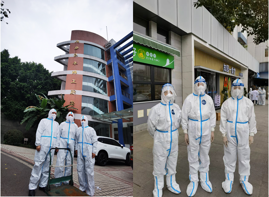 一个支部就是一座堡垒,一名党员就是一面旗帜。无论是驻守员工宿舍送饭送物资,一人负责130多名员工,每日人均运送520人次物品的院领导、党支部书记,还是“疫”线送药日均数百人次,实现员工宿舍楼全覆盖的辅导员,亦或是从未发生一次生活物资断供情况,构筑坚固“防火墙”的后勤保障人员,都在自己平凡的工作岗位上散发着不平凡的光芒。“疫情就是命令,防控就是责任。这是一场无人能置身事外的挑战和考验,是一场艰苦的战役。党支部成立了,我们就有了主心骨、有了方向,也更加有信心、有能力打赢这场硬仗。”身着防护服的党委副书记林兴冬的话掷地有声。