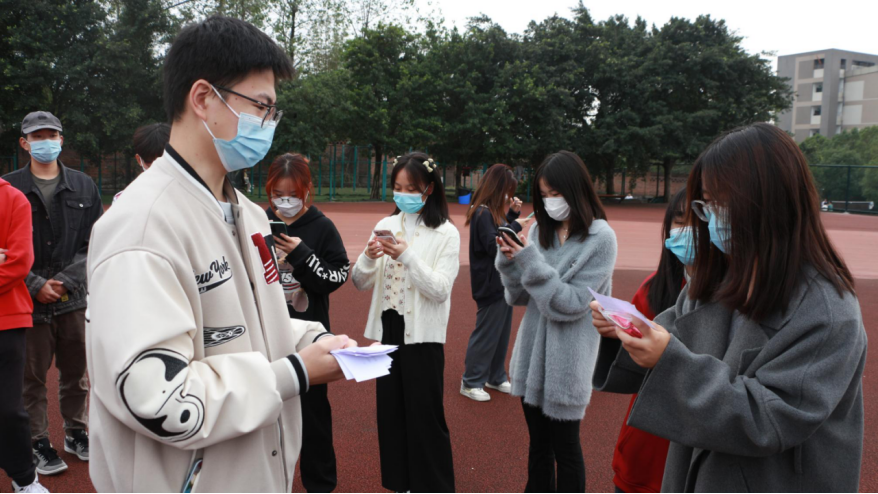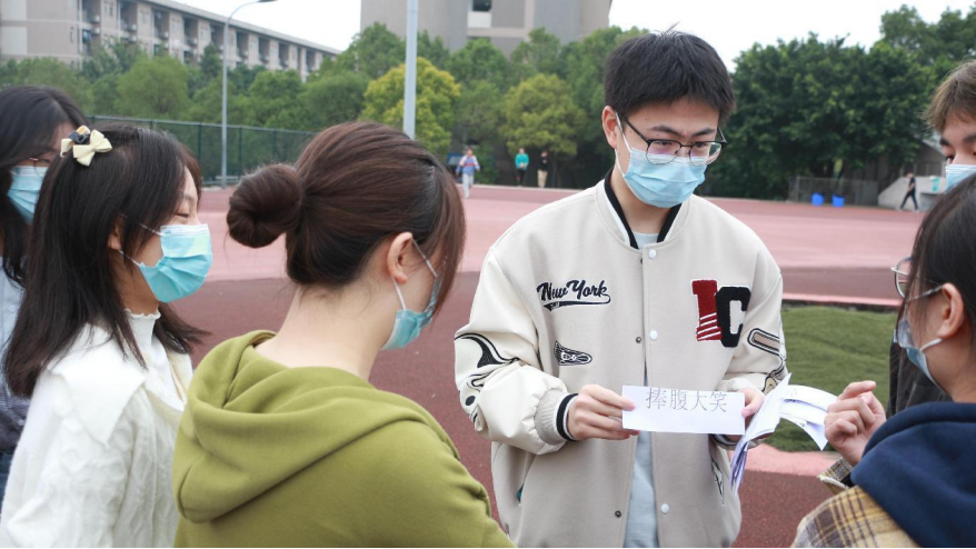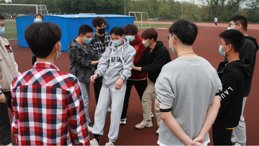 本次素质拓展活动包括“信任背摔”、“你划我猜”、“‘党的二十大’知识竞赛”、“青马接力”四个项目。活动伊始,国机械2101班高帅为同学们详细地讲述了本次活动的目的、意义以及活动规则。随即,所有同学分为四组队伍,争分夺秒传递“你划我猜”的信息,在此过程中体会团结一心、合作共赢的精神。