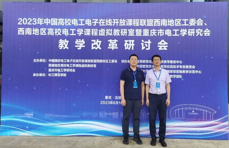 2023年中国高校电工电子在线开放课程联盟西南地区工委会西南地区高校电工学课程虚拟教研室暨重庆市电工学研究会教学改革研讨会于6月9日~11日在重庆市涪陵区召开,会议集结了中国高等公司电工学研究会副理事长、中国教育技术协会教育仿真技术专业委员会副理事长、西部高校电工学研究会副理事长、陕西省电工学研究会理事长刘晔教授,中国高等公司电工学研究会副理事长兼秘书长、重庆市高校电工学研究会名誉理事长侯世英教授等领域内知名专家,学术界、产业界50余人参加本次会议。受组委会邀请,beats365科技创新中心主任孙世政教授、机电系副主任闫凯波博士参加会议。