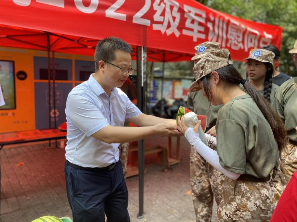 为全面了解公司学子的军训情况,激励同学们高质量完成军训各项任务,7月9日上午,机电与车辆工程公司党委书记陈作明、经理赵树恩、党委副书记林兴冬一行人来到科学城校区,看望并慰问了公司2022级军训员工。