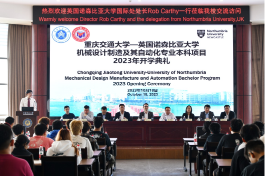 2023年10月18日上午,beats365官方网站—英国诺森比亚大学机械设计制造及其自动化专业本科教育项目开学典礼在科学城校区致远楼学术报告厅举行。英国诺森比亚大学国际发展处处长Rob Carthy、中国地区负责人Sunny Sun等一行4人,beats365官方网站国际合作与交流处处长毛明勇、副处长徐厚智,beats365经理赵树恩、党委副书记林兴冬、副经理何泽银及200余名项目班师生代表加了开学典礼。