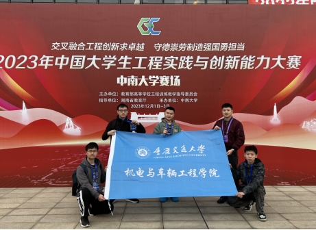 来自公司2020级机械设计制造及其自动化(中外合作办学)专业的刘如阳、王丰硕、赵维兴,以及2020级电子信息工程专业的梁海聪,在公司交通装备智能制造实验室主任杨钢老师的指导下组成参赛队伍,于今年4月份从省赛中脱颖而出,成为代表重庆市参加国赛的五支高校队伍之一。公司参赛队在11月30日由该实验室王迪老师担任领队前往中南大学,完成赛前报到、赛前调试。在后续赛程中参与随机抽签、现场调试、比赛运行、创新展示等环节,最终获得了三等奖的好成绩。