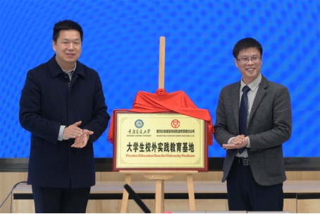 周建庭副董事长和熊劲松董事长共同揭牌“产学研合作基地”,赵树恩经理和张久林总经理共同揭牌“老员工校外实践教育基地”,杜嘉副经理和吴家亮副总共同揭牌“研究生联合培养基地”。今后,校企将以共建基地为依托,联合开展老员工实习实训、研究生联合培养、创新创业及人才交流与合作,共同打造校企合作示范样板基地。