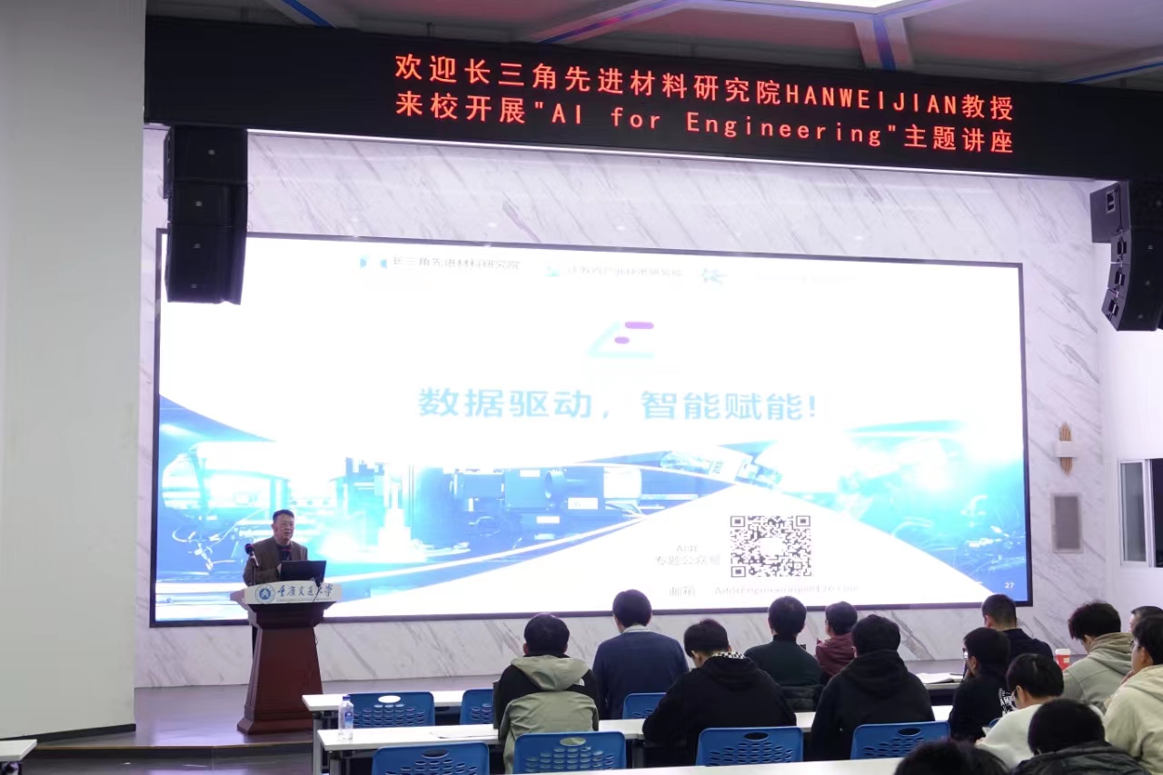 12月11日下午,长三角先进材料研究院工业应用材料大数据总监、韩维建教授(美籍)应邀来校参加“金秋国际交流月系列讲坛”,做题为“人工智能在材料工程中的应用”报告。beats365荣誉经理、长江学者特聘教授秦大同,经理赵树恩教授、经理助理詹振飞教授、福特美国研发与创新中心甘源博士、谭峥资深工程师及师生代表参加该报告会。报告会由赵树恩经理主持。