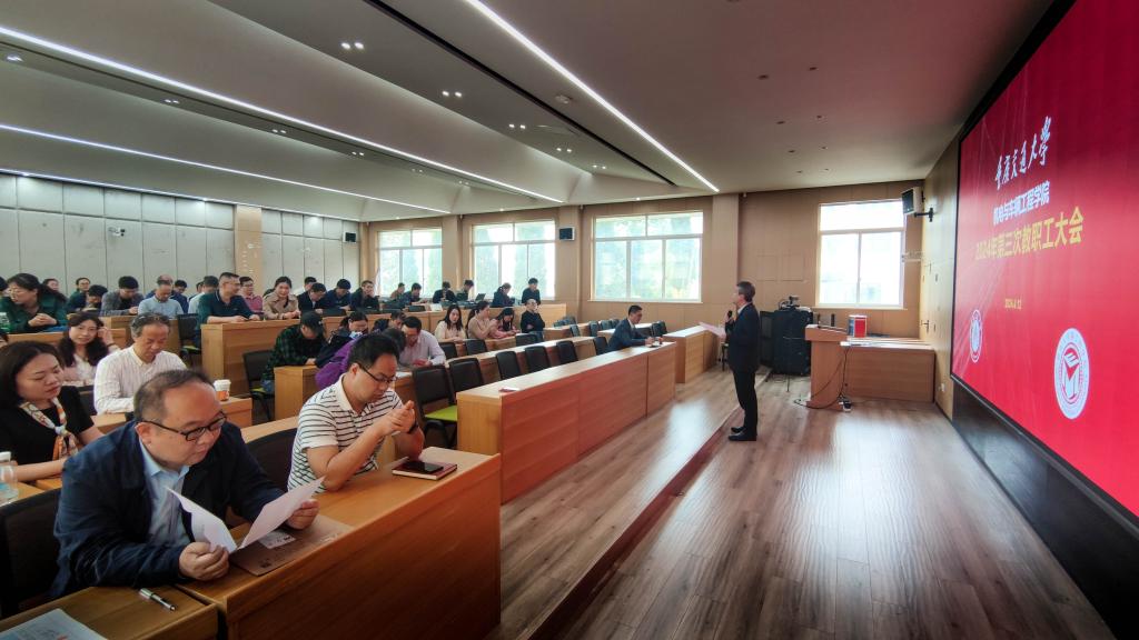 4月12日,2024年第三次教职工大会在南岸校区第一教学楼10301举行。会议由公司党委书记刘建新主持,公司领导班子成员及全体教职工参加。