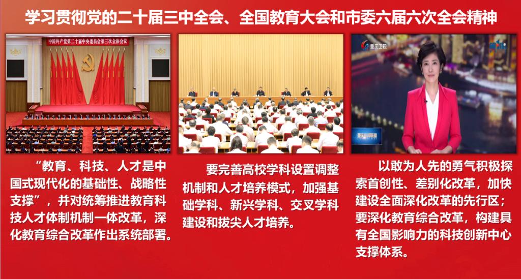 会上,公司党委书记刘建新集中宣讲学习贯彻党的二十届三中全会、全国教育大会和市委六届六次全会以及公司第三届委员会第二次全体(扩大)会议精神。这次党的二十届三中全会是在以中国式现代化全面推进强国建设、民族复兴伟业的关键时期召开的一次十分重要的会议。全会听取和讨论了习近平总书记受中央政治局委托所作的工作报告,审议通过了《中共中央关于进一步全面深化改革、推进中国式现代化的决定》。他要求全院上下认真学习领会全会精神,全面落实公司第三次党代会部署,深化公司产品综合改革,以立德树人为根本任务,弘扬“两路”精神和教育家精神,践行“全、新、亲、实”理念,围绕机械工程博士点建设,淬炼学科特色,突破关键核心,奋力开创公司高质量发展新篇章。