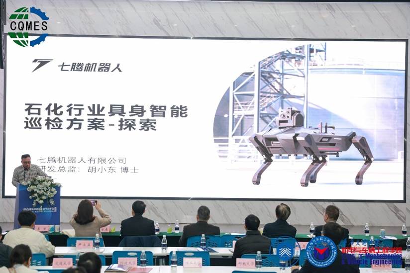 七腾机器人有限公司研发总监胡小东作《石化场景中具身智能体机器人的应用》报告,介绍了石化行业的应用需求和传统巡检方案的不足,针对不同场景研发了多款技术领先的轮式、足式、挂轨式机器人产品及标准化解决方案,并结合具身智能打造智慧巡检体系,助力用户企业实现降本增效。
