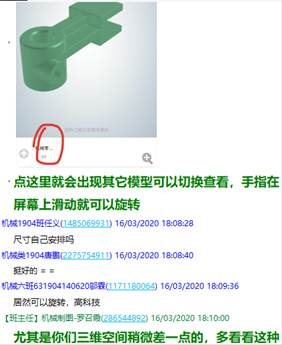 为保证教学效果,解决员工对机械零件结构理解难的问题,教研组竭力寻找解决方案,最后借助云端资源,让员工仅使用手机微信或者QQ扫二维码方式,轻松将多个零件三维呈现眼前,手指在屏幕上滑动轻松控制模型转动,直观学机械。