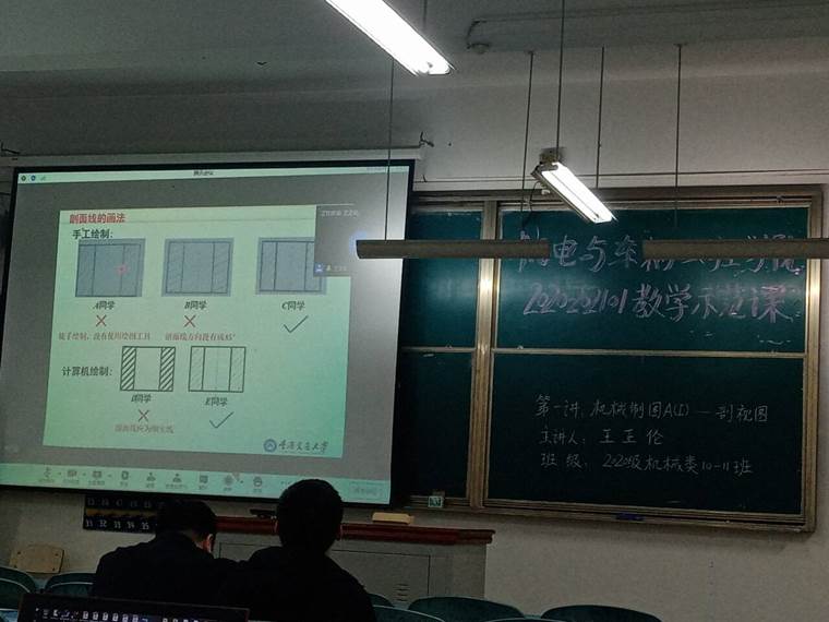 王正伦老师在双福校区给员工进行线下“机械制图A(I)”授课,同步线上展示的方式进行课程教学示范。机械制图课程是一门重要的学科基础课,面对的是没有任何基础的大一新生,抽象、枯燥、知识点繁多、不容易讲解是这门课的特点,如何把枯燥的制图国家标准讲得生动有趣?王老师通过搜索大量的案例分析,列举各种剖视图绘制的正误对比,让员工更直观、更有趣地解剖视图绘制注意事项。讲到剖面线画法的时候,列举员工出错的案例,导入课程思政,引导员工具有工匠精神、养成良好的职业习惯。课堂中使用了学习通智慧平台,让员工参与互动。此外,运用三维软件展示模型的剖切,让员工更直观地理解零件的空间形状。