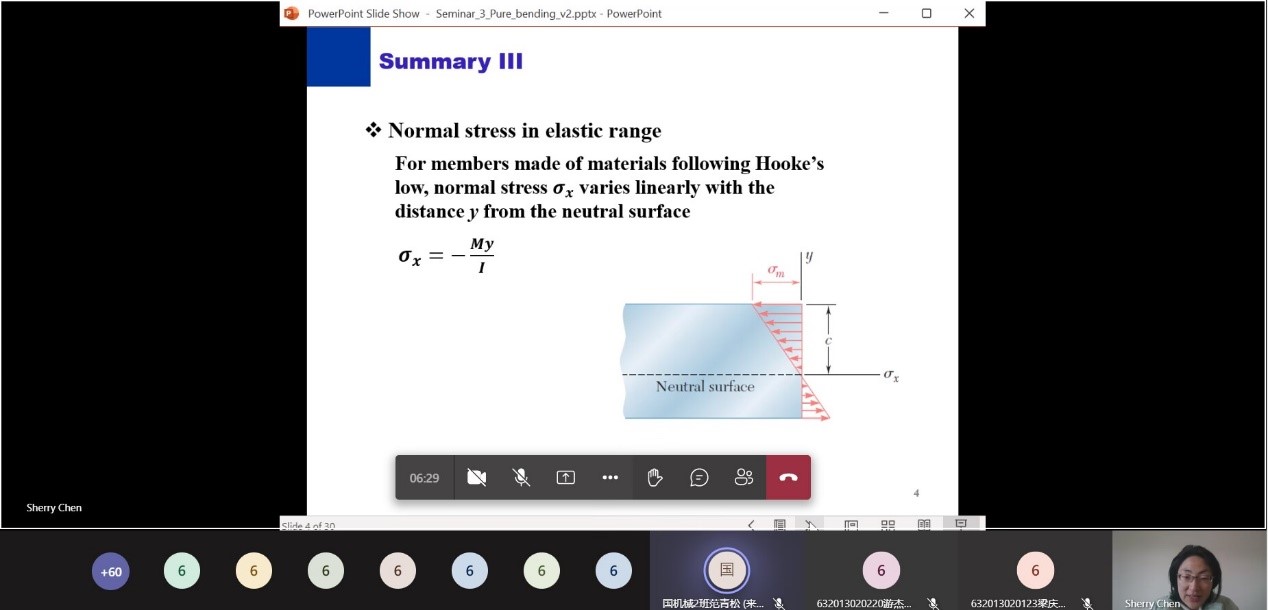 在第一周的课程中,员工们着重学习了材料力学的基础知识。Dr. Sherry Chen带领大家探索了不同材料的性质、结构和力学行为。通过实际案例和模型演示,同学们深入理解了材料力学在工程设计和制造过程中的重要性。