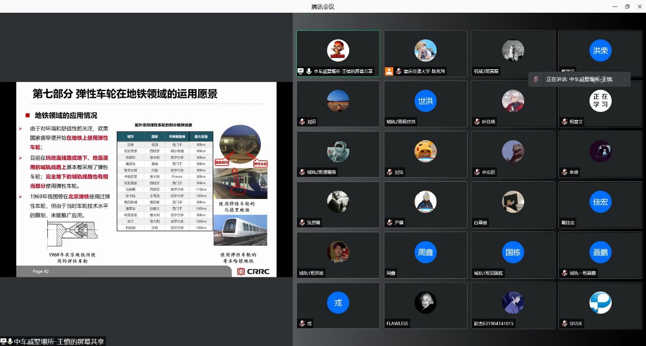 为开拓员工视野,了解轨道交通车辆的前沿技术和发展方向,beats365于12月4日邀请中车戚墅堰机车车辆工艺研究所有限公司技术研发中心产品研发工程师王慎做了“弹性车轮和轴桥产品的技术研究”的前沿微课专题讲座。本次讲座采用线上讲座方式。
