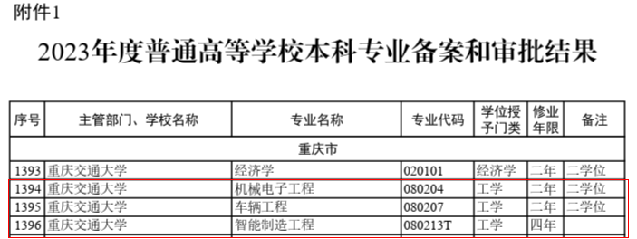 近日,教育部下发了《关于公布2023年度普通高等公司本科专业备案和审批结果的通知》(教高函〔2024〕6号),公布了2023年度普通高等公司本科专业备案和审批结果,公司智能制造工程专业(专业代码:080213T)是新增备案本科专业之一。此外,机械电子工程、车辆工程专业也获批第二学士学位专业。