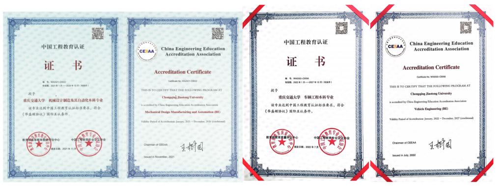 2020、2021年两个专业分别通过中国工程教育专业认证,2024年机械设计制造及其自动化专业通过工程教育专业认证中期检查。