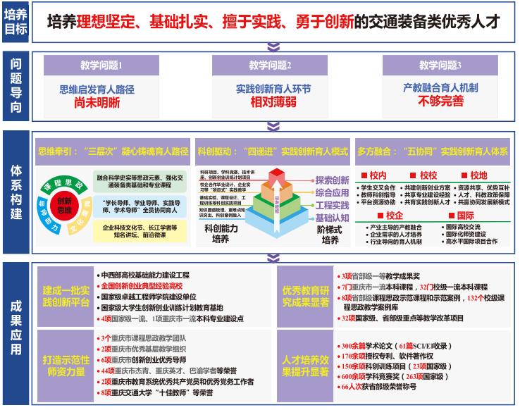多年来,公司依托于国家级一流本科专业建设点和国家卓越工程师计划,以多项国家级和省部级重点教学改革项目为契机,以培养“理想坚定、基础扎实、擅于实践、勇于创新”的交通装备类优秀人才为目标,经过多层次、全方位的探索和持续改革,构建出思维牵引、科创驱动、多方融合“三层次、四递进、五协同”的跨域交融育人体系。