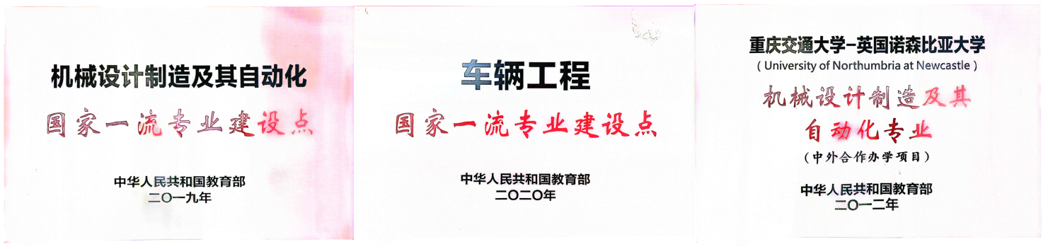 2019、2020年机械设计制造及其自动化、车辆工程2个专业分别获批国家一流本科专业建设点,2018年机械设计制造及其自动化、机械电子工程获为重庆市普通高校大数据智能化类特色专业。