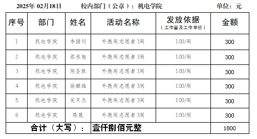 机电与车辆工程员工实习实践公示(外教周志愿者)