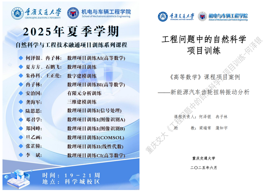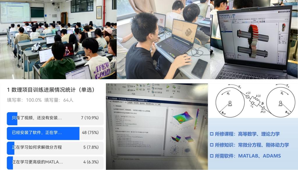 公司依托各专业特色与优势,组建了“自然科学与工程技术融通项目训练”指导团队,将高等数学、大学物理、材料力学中微分方程、重积分、特征向量等知识,应用到新能源汽车高速齿轮振动控制、热泵空调压缩机容积计算、车辆路径规划与图像识别等项目实战中,各专业开发了数理项目训练课程资源集12个,集中解决大一大二数理知识学习与真场景真问题脱节现象。