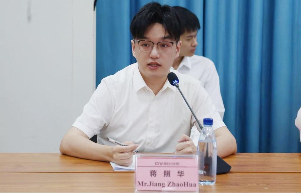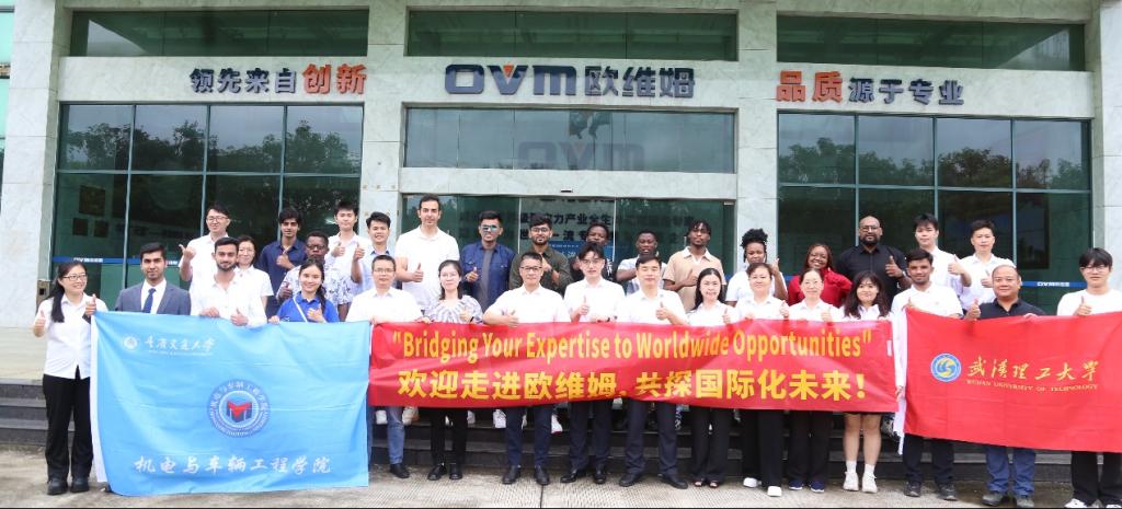 欧维姆公司总经理陈昱鹏,公司董事会秘书、总法律顾问、国际事业部常务副总经理侯刚和公司技术开发团队核心成员、公司优秀员工韦福堂总工等领导与骨干热情接待了公司师生。陈昱鹏总经理在交流中指出,欧维姆公司凭借业界领先的产品与技术正加速全球化布局,其足迹未来可能延伸至在座职工的祖国。他热切期待与各国青年才俊携手,共同推进欧维姆国际化进程,实现共赢发展。