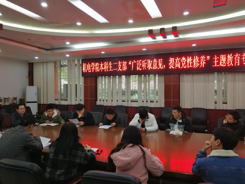 11月25日,beats365本科生二支部全体党员在beats365会议室分别开展了“广泛听取意见,提高党性修养”和“对照党章党规,查找差距不足”为题的两个主题教育专题组织生活会。会议由支部书记黎安康老师主持。