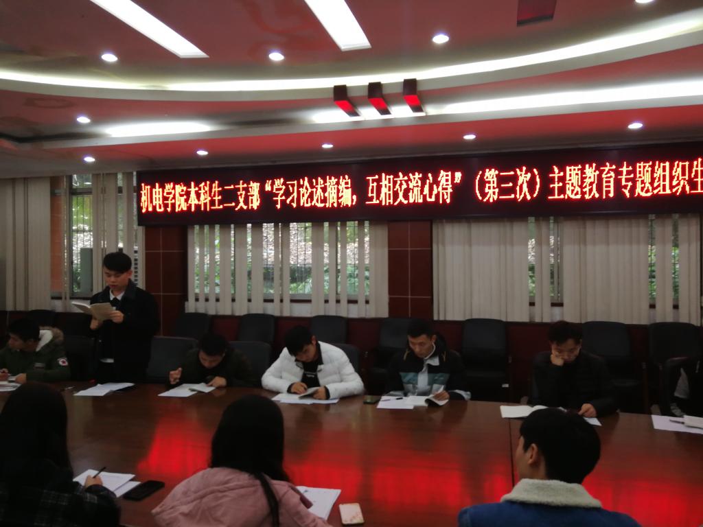 第二阶段,在经过了近一个月的自主阅读学习后,支部于11月24日13:00在第三教学楼30103教室开展了“学习论述摘编 牢记初心使命”主题教育专题组织生活会,又一次集中学习习近平总书记关于“不忘初心、牢记使命”主题教育的重要论述。