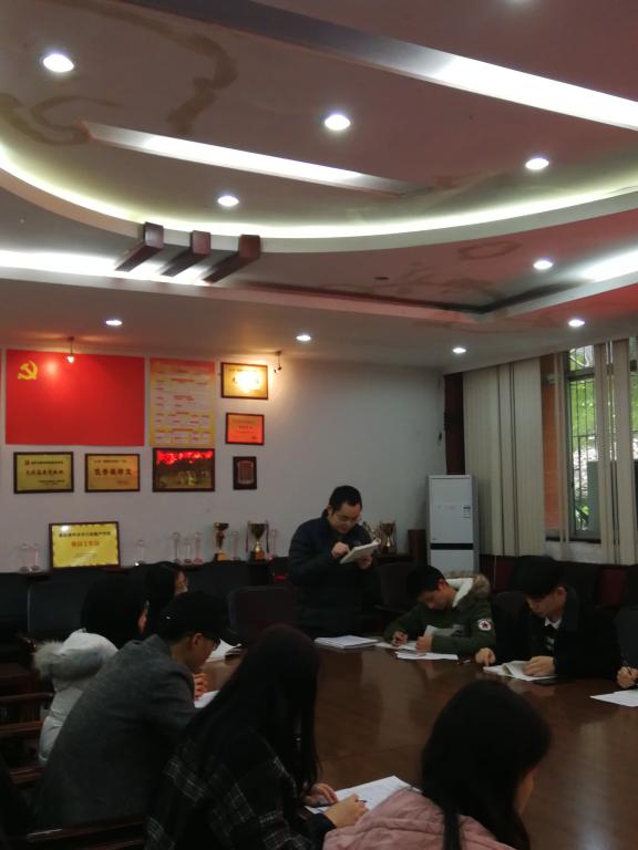 支部书记黎安康老师在会议正式开始前再次重申党中央在全党范围内开展“不忘初心牢记使命”的重大任务与重要意义,并向支部全体党员同志发出了进行系列读书学习活动的号召。