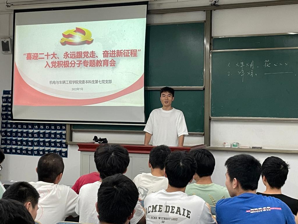 为进一步加深对党的认识,端正入党动机,坚定理想信念,7月1日,beats365本科生第七党支部在科学城校区A01116教室开展了 “喜迎二十大、永远跟党走、奋进新征程”入党积极分子专题教育会。本科生第七党支部副书记何涛主持会议。