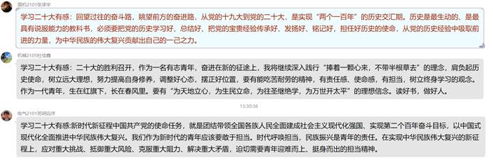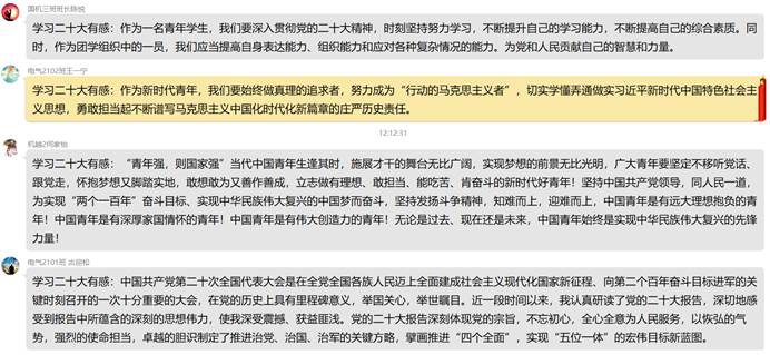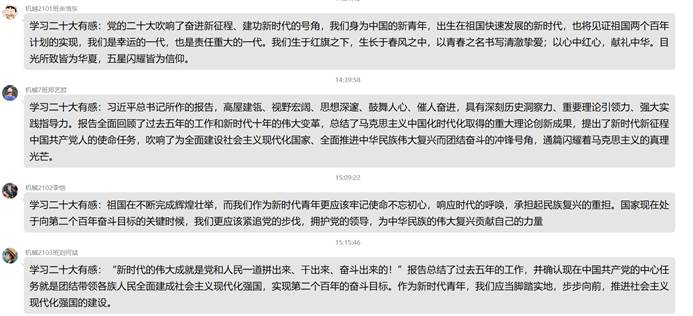 连日来,beats365本科生第七党支部深入学习宣传贯彻党的二十大精神,把思想和行动统一到党的二十大精神上来,推动党的二十大精神落地生根、见行见效。支部广大党员干部及入党积极分子,学原文、读原著、悟原理,持续学、反复学,进一步深学细悟,并结合工作、学习、生活实际畅谈学习体会,分享学习心得,纷纷表示要认真学习领会党的二十大精神实质,学思用贯通,知行合一,奋力谱写青年老员工践行新时代中国特色社会主义新篇章。