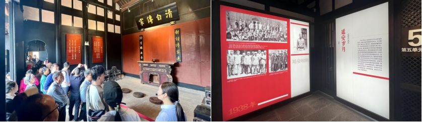 首先,同志们来到了杨尚昆同志的旧居“四知堂”。在解说的带领下,同志们观看了杨尚昆旧居内陈列的珍贵照片和文物资料,深入了解了杨尚昆积极投身革命的光辉事迹和为国家夙夜在公的高尚品格,体会了杨尚昆作为伟大的无产阶级革命家、政治家为中国人民的解放事业和建设事业毕生奉献的伟大情操。一件件实物、一幅幅照片、一本本文献生动再现了杨尚昆波澜壮阔、英勇奋斗的一生。