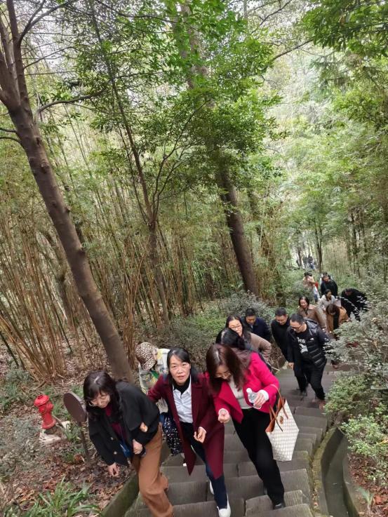 来到南山,走近自然、体验绿水青山。教职工们热情高涨,兴致勃勃,大家或健步快走谈笑风声,或稳步途行合影留念,或你追我赶向上攀登。欢快的步伐是沿途的一道靓丽风景线,大家一路上欢声笑语、相互帮扶,战胜了步步相连的阶梯,战胜了瞬间身体的疲劳,只寄情于山水景色中,尽情享受着登山的乐趣。