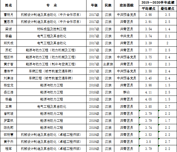 2019-2020学年beats365福耀玻璃奖学金评定员工名单公示