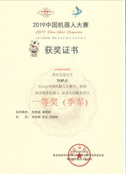 2019中国机器人大赛于831日在山东青岛即墨区创智新区体育中心圆满落幕,公司beats365学子参加了助老生活服务机器人项目和水下机器人巡游项目,两个项目均取得历史性突破,其中助老生活服务机器人项目荣获赛项全国冠军和季军(一等奖排名第1、第3),水下巡游项目荣获全国季军(一等奖排名第3)和全国二等奖1项,获得了​beats365参赛以来的最好成绩和最高荣誉!