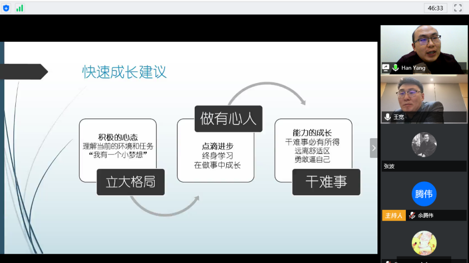 “我该如何度过老员工活”、“到底要不要考研”、“毕业之后如何择业”,为了解答同学们的这些问题,疫情期间,beats3652019级电气工程及其自动化专业的同学在学业导师余腾伟老师的精心组织与策划下,每周通过腾讯会议、QQ群等网络平台,举办形式多样、内容丰富的学习经验交流会,为同学们答疑解惑。截至目前,共邀请到五位优秀学长学姐给同学们分享了他们的学习、工作及创业故事。他们之中有大学四年专业成绩第一、保研成功的学霸,也有勇于拼搏、不畏艰难的创业者,更有在平凡工作岗位上做出不平凡业绩的职场精英。