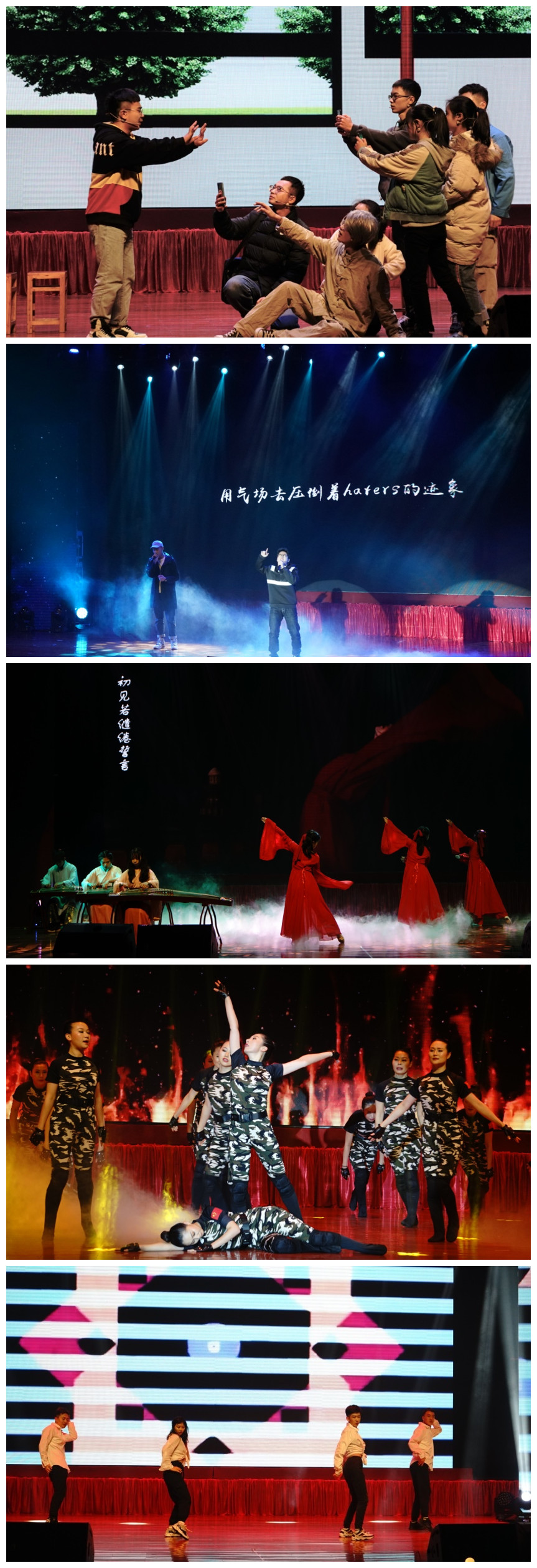 教师舞蹈《出发》,红光与舞蹈的映衬,庄严凝重,表达着公司老师对全院员工的殷切希望,鼓励同学们勇往直前,追梦青春。《飘向北方》一曲惊人,燃爆人心的说唱,一次次震击心脏,一次次颤动灵魂。曲中两个声音,一个柔美,一个阳刚,让观众为之叫好,更是燃起了同学们新的勇气和斗志。《桃花诺》展现的是中国古风之美,歌声优美祥和,舞蹈婉转动人,一拨,一挽,一踏,一曲芳华,将唯美的画面永远定格在我们心中。一首《慢慢喜欢你》,虽是简单的旋律和嗓音,却能让人热泪盈眶。绿瓦红砖,柳树青苔,亘古未变。从喜欢到老去,慢慢走完这一生,慢慢是个最好的原因。