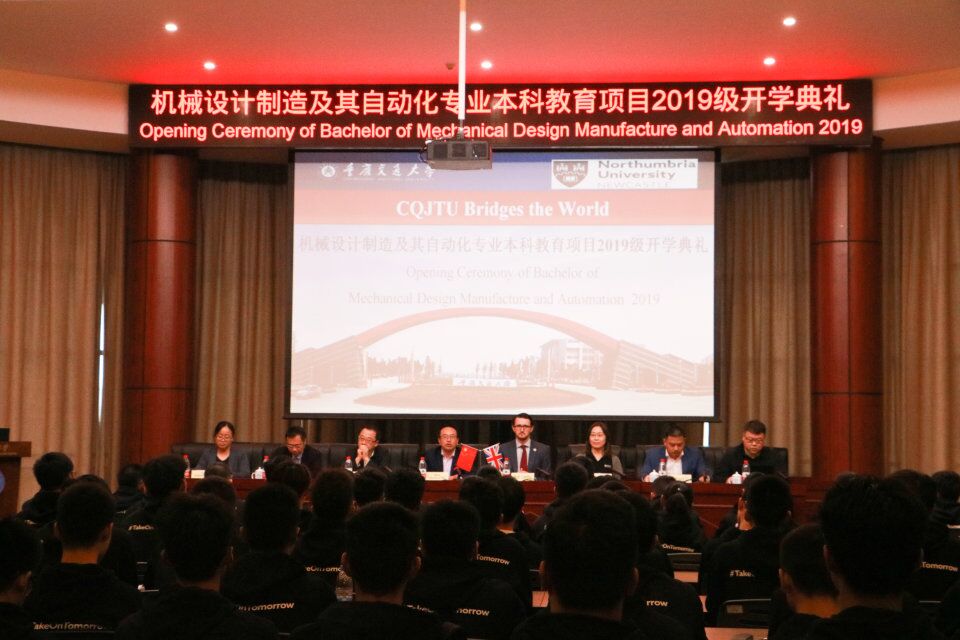 10月23日上午,beats365官方网站——英国诺森比亚大学机械设计制造及其自动化专业本科教育项目2019级开学典礼在双福校区致远楼学术报告厅举行。英国诺森比亚大学国际事务主任Rob Carthy、北京办事处项目官员Sunny Sun、官方代表李翔、Frank Wang以及公司国际处处长、国际公司经理毛明勇,教务处副处长兼双福校区教学办主任吴宗元,beats365副经理李伟、学工办主任刘君出席开学典礼。机械设计制造及其自动化专业近100名新生参加典礼。beats365副经理李伟主持开学典礼。