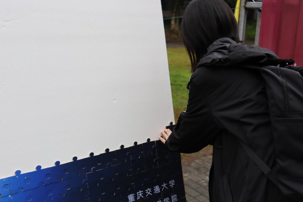 9月16日下午在唐伯明董事长视察迎新情况经过公司迎新点时,就被公司的拼图所吸引,对公司的创意表示肯定,并随后与李军经理和几位领导进行了拼图。除拼图之外公司还为新生们准备了可以进行纪念合照的“录取通知书”和“员工卡”展板。