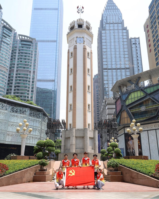 抗战胜利纪功碑暨人民解放纪念碑,矗立在重庆城市的心脏地带,这座纪念碑标志着中国军民在反法西斯战争中取得的胜利成果,是中华民族近百年来抵御外族入侵取得第一次全面胜利的历史见证。她也见证了在中国共产党领导下,经过长期奋斗,流血牺牲终于翻身解放的胜利象征。这是一座具有双重意义的纪念碑,也是缅怀为新中国诞生而牺牲的革命志士的一种方式。她是重庆市发展的缩影,其本身就蕴藏着重庆城市发展的巨大能量与希望,是重庆人的根和魂。实践团在解放碑前向这座城市的英雄致敬。