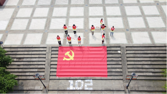 在聂荣臻元帅陈列馆广场,实践团手拉手摆出“二十”字样,用重庆红色地标图谱的老图片拼成“102”字样,致敬建党102周年,传递了实践团“学习二十大 永远跟党走 奋进新征程”的坚定信念。