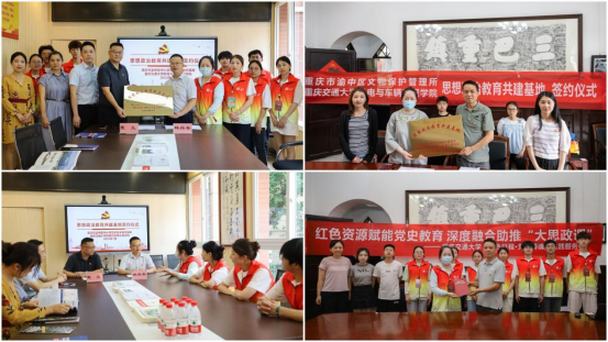 为深入贯彻落实习近平总书记关于“大思政课”的重要指示精神,坚持不懈用习近平新时代中国特色社会主义思想铸魂育人,“红色征程·党史铸魂”党史学习教育团围绕“学习二十大 永远跟党走 奋进新征程”这一主题,在重庆市开展党史学习教育实践活动,主要包含“追寻红色足迹,赓续红色血脉”、“开发党建+思政平台,建立合作实践基地”、“聘任校外思政导师,打造大思政课堂”三项实践内容。