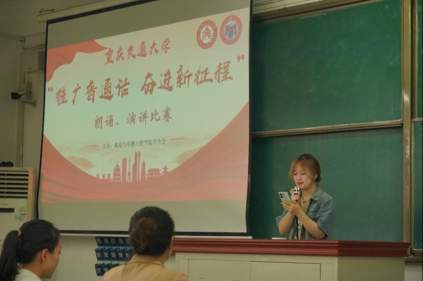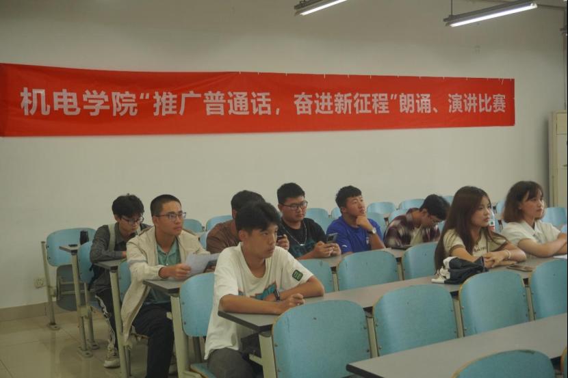 比赛过程中,参赛选手仪态大方、精神饱满,紧紧围绕“推广普通话,奋进新征程”这一主题,联系自己的生活实际和学习感悟,用标准、清晰的普通话和抑扬顿挫的语调进行诵读演讲,有抒发对祖国的热爱与赞美之情,有展示推广普及普通话对个人和社会产生的真切变化,案例生动,贴近现实。参赛选手们坚定的眼神和充满力量的话语,充分展现了机电学子的蓬勃朝气和昂扬姿态。